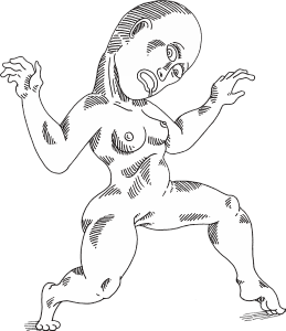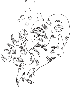Before longbeard got the chance to respond to the orders of the fish gods, they disappeared below sea level. The fisherwoman had arrived. She wanted revenge on the fish gods. She had thrown her fish hook in the middle of the school of fish gods when they were talking to Langbaard and they were shocked when that happened. The fisherwoman was so big that she could stand in the ocean and she came running through the water in the direction of Longbaard's ship to see if she had caught something. She was disappointed when she saw that was not the case and wanted to turn around to continue on her revenge mission when she saw langbaard's ship. She ducked under water and approached his ship unseen. Longbeard himself was very surprised at the sudden disappearance of the gods. "Maybe it's something I said, what do you think Archibald?" Archibald the parrot was too scared to answer because he saw the gigantic face of the fisherman on port side. Langbaard turned to see what the problem was and was so frightened that he kicked Archibald promptly overboard.Longbeard did not notice this. Archibald sank in the depths of the ocean. Long beard had other concerns at that time. "Who are you?" he asked.