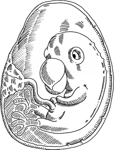 The unborn parrot spoke with stupid sounds from his egg.