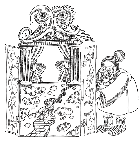 "I picked him up from the street. The poor little thing. I let him dance and sing. He was good and made a decent amount of money so I had a fun It was possible to buy a puppet show, then he left me because he wanted to see the world with that slobbering idiot girl, stupid bird."