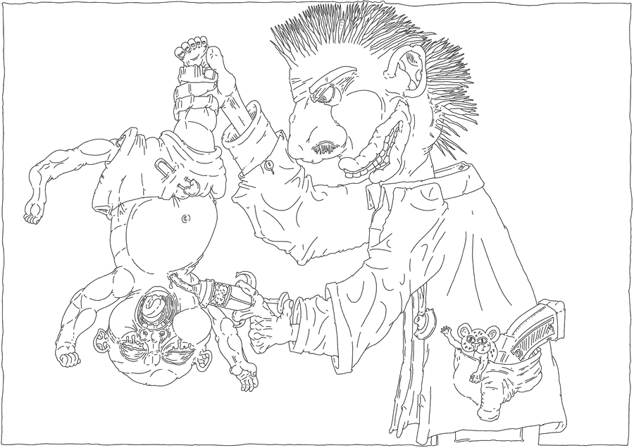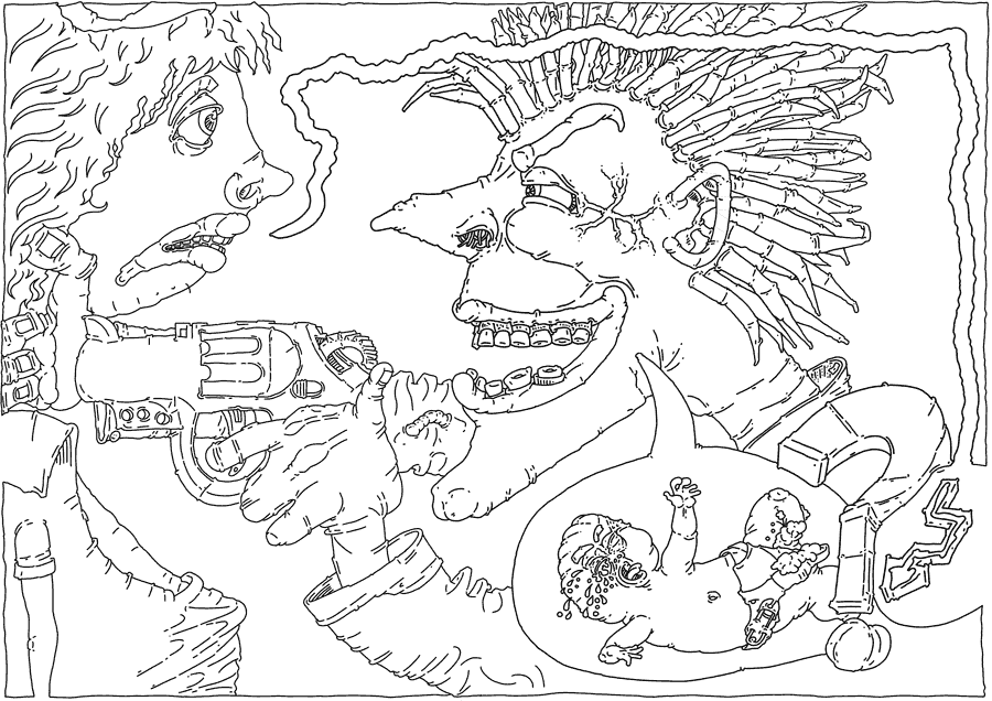 "Now that I have appeared here in the depths of the parrot, it is certain that the parrot has gone mad for lack of oxygen in his brain, I am like an artificial table tent of an artificial uterus with a carnivalistic squid."