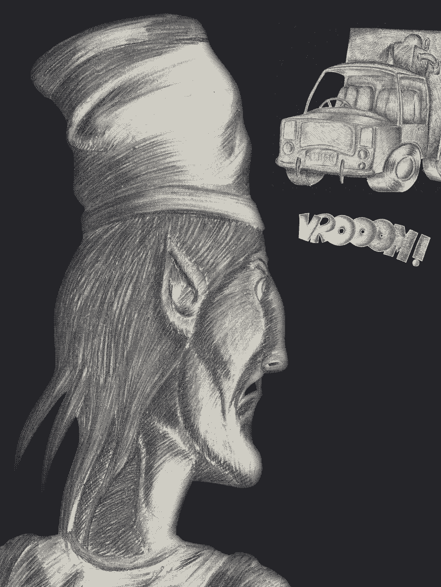 The tall driver closed his light-sensitive red eyes and shrieked: