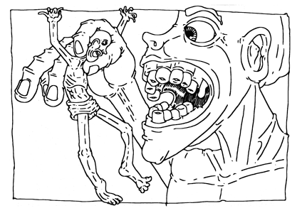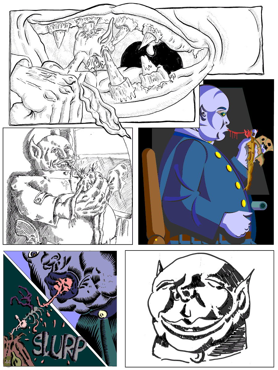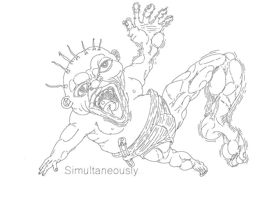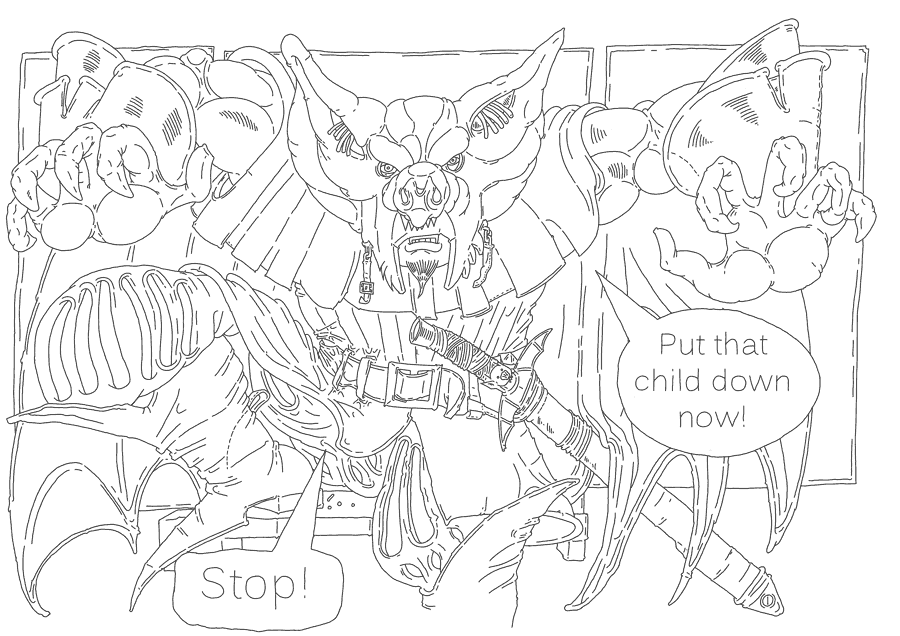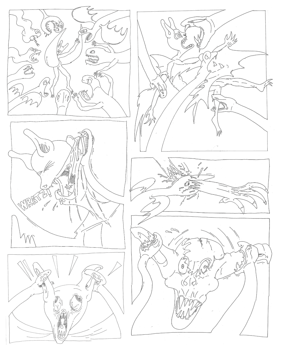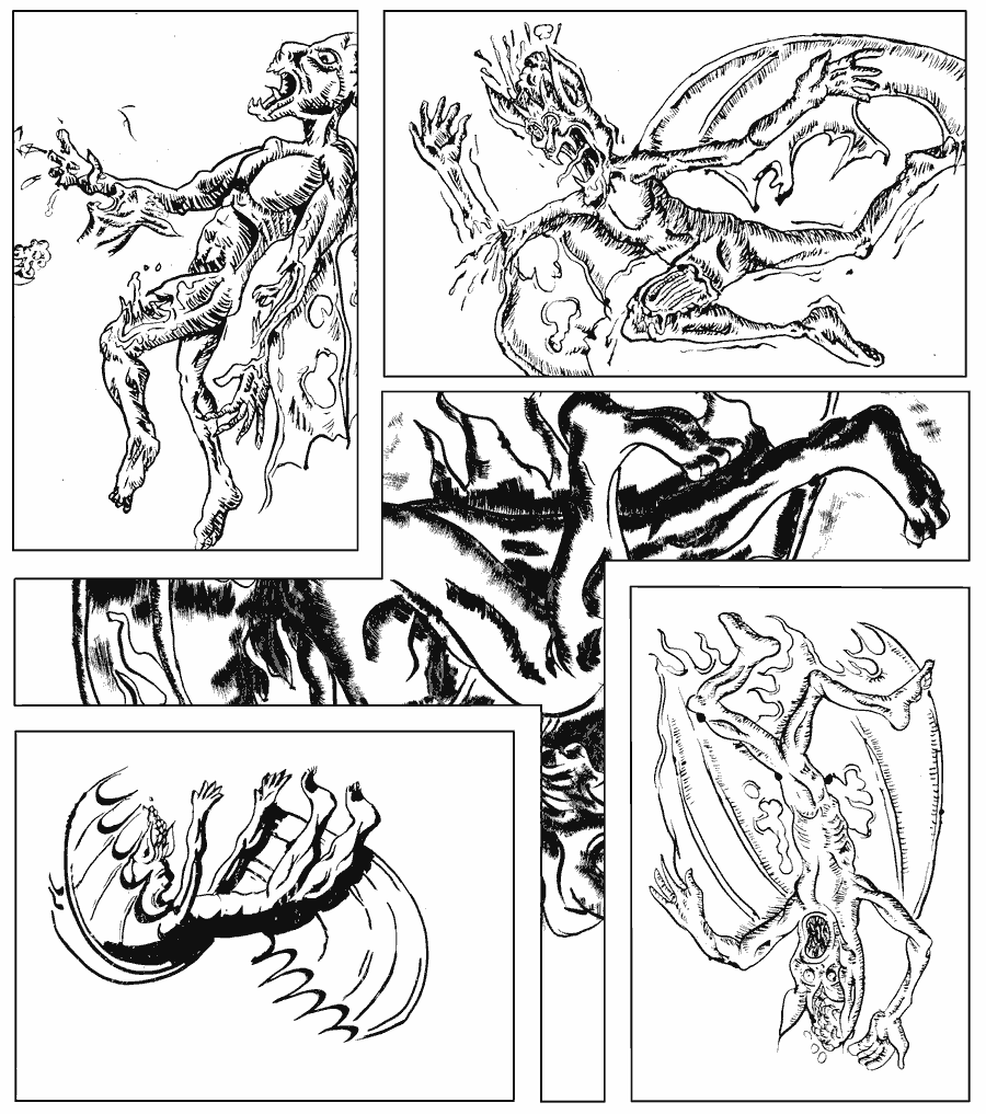 The bat vampire is suddenly attacked by 9 floating snake fish attacking with a fierceness and venom that you could hardly imagine. It was a wild madness of hatred and bloodlust.