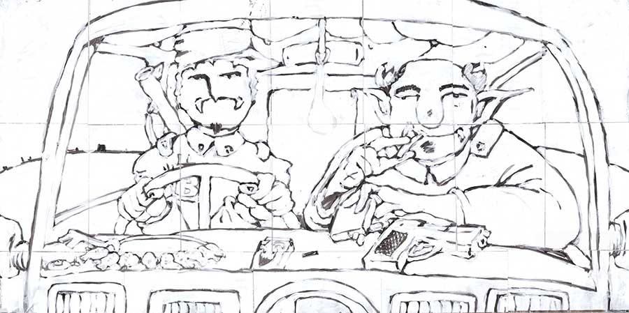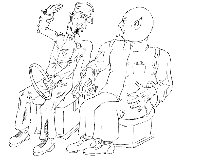There are two people in the truck. The light of the stars made their features stretchy and pale. They drive on a highway on the globe. The driver is a thin tall man. He was uncomfortable in his chair because he was too long. The other was a fat big man. They have been working for years at the same catering company that supplies a number of restaurants on the globe with stock. The driver tries to talk about what he thought where philosophical thoughts. He usually started these conversations with the sentence: