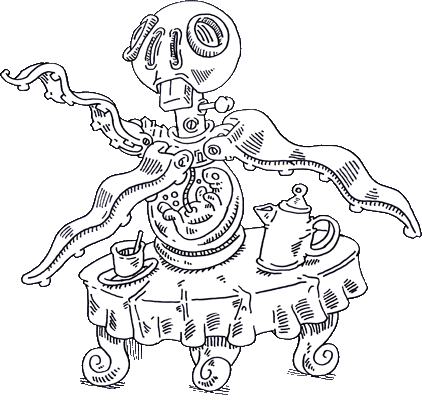 "Now that I have appeared here in the depths of the parrot, it is certain that the parrot has gone mad for lack of oxygen in his brain, I am like an artificial table tent of an artificial uterus with a carnivalistic squid."