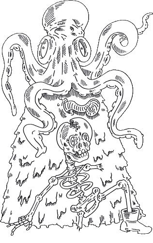 The wise old Octopus sitting next to the kings on a rock with the dead skeleton that whispered things to him from all times said:
