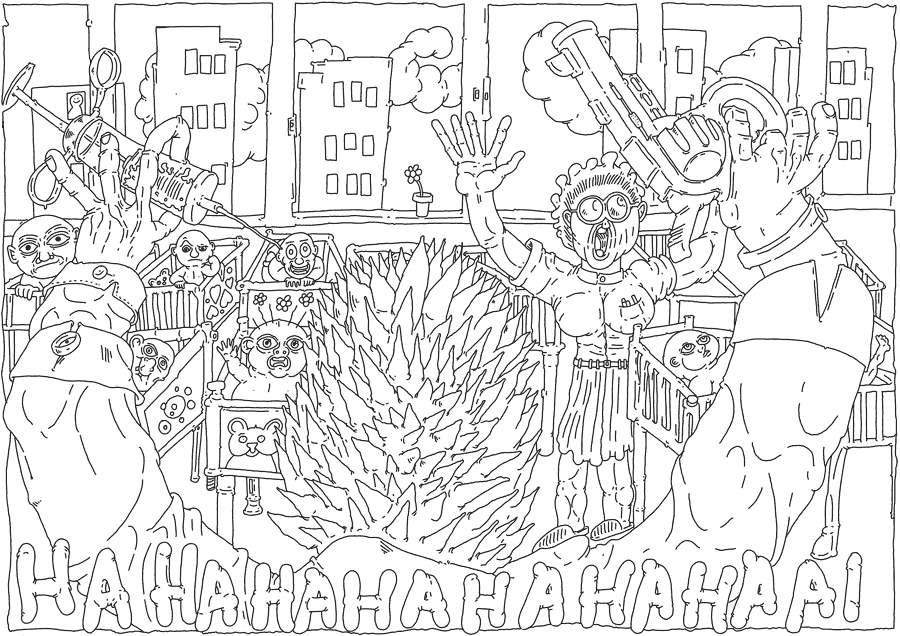 when he had injected the 5th baby, a voice sounded dark and drowned in gloom. "Arlecchino ..." "stop" "put that baby down!"
