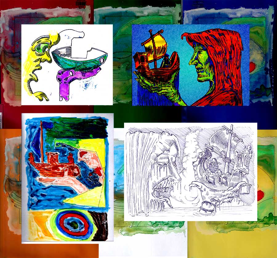 On the newly created sea, the pirate longbaard bloodsteek was surfing on the web and talking to his parrot Archibald. He searched online for the girl with the black top. She was the love of his life but they were separated from each other by the will of the nine fishes who had just made everything. As he typed, the salty tears fell on his keyboard and he mumbled about betrayal, certainty, jealousy, greed, irritation, mission creep, recklessness, drama and justification. Archibald cleaned his beak and looked at the pictures of girls in black tops that scrolled past. Then he said "What do you want to do ?, those fish have something in their head, you will not convince them to let you meet her." Langbaard replied "That can be true, but I will keep trying until this world is compressed with all the gravity and strength of the situation."